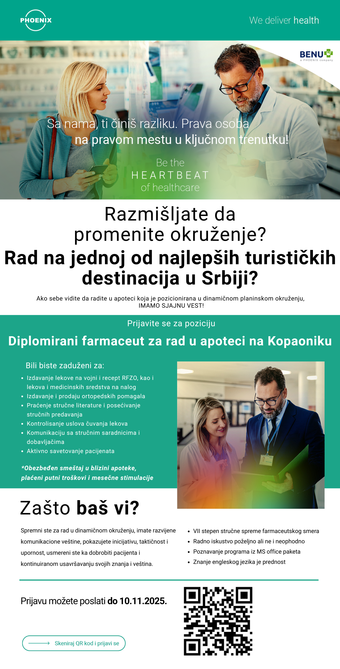 Diplomirani farmaceut - za rad u apoteci na Kopaoniku